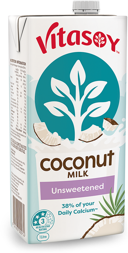 Made from real coconut cream sourced from coconuts grown all year round in sunny climates, Vitasoy Coconut Milk Unsweetened contains the goodness of calcium in every serving~.