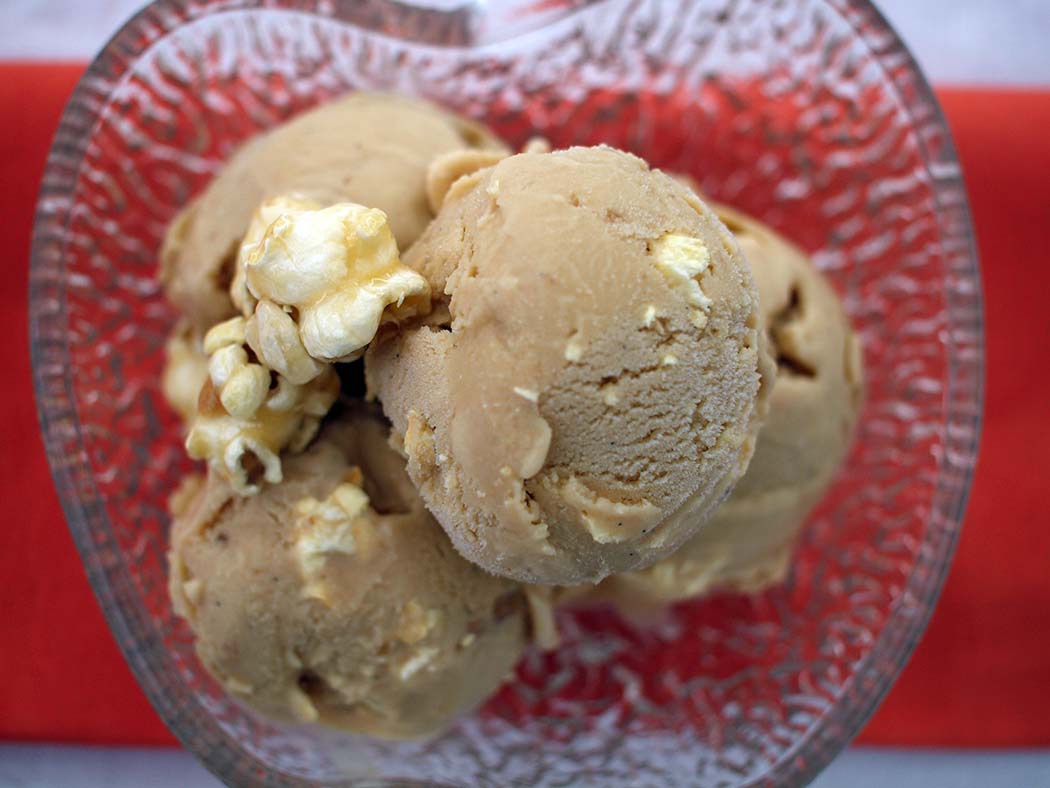 A rich caramel ice cream is made even better with delicious little chunks of caramel popcorn. I'm sure you'll agree this is a much better snack for movie watching than regular salted popcorn!