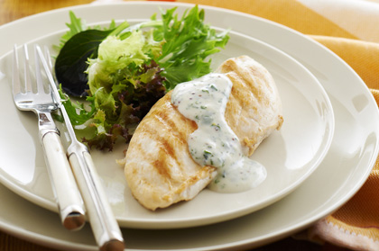 - Heat griddle (or non-stick frypan) and spray chicken fillets lightly with olive oil spray.