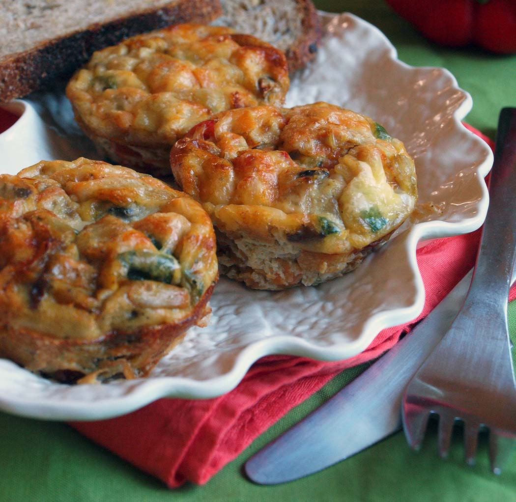 Mini versions of anything for breakfast are a treat! These are perfectly sized to serve with some toast and more veggies like wilted spinach and slow roasted tomatoes for a great start to the day.