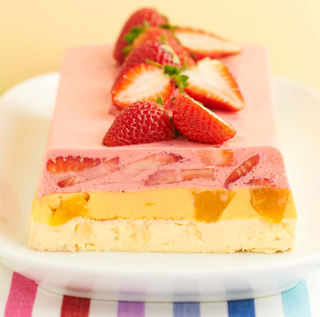 - Whilst orange layer is setting in fridge, heat final 400ml of Soy Milky Lite until almost boiling. Pour in pineapple jelly crystals and stir until dissolved. Set aside to cool completely to room temperature. Remove strawberry and orange layer from fridge when fully set. Place pineapple pieces evenly over set orange layer. Pour cooled pineapple jelly over pineapple. Place in the fridge to set (2 hrs). Serve with fresh fruit.