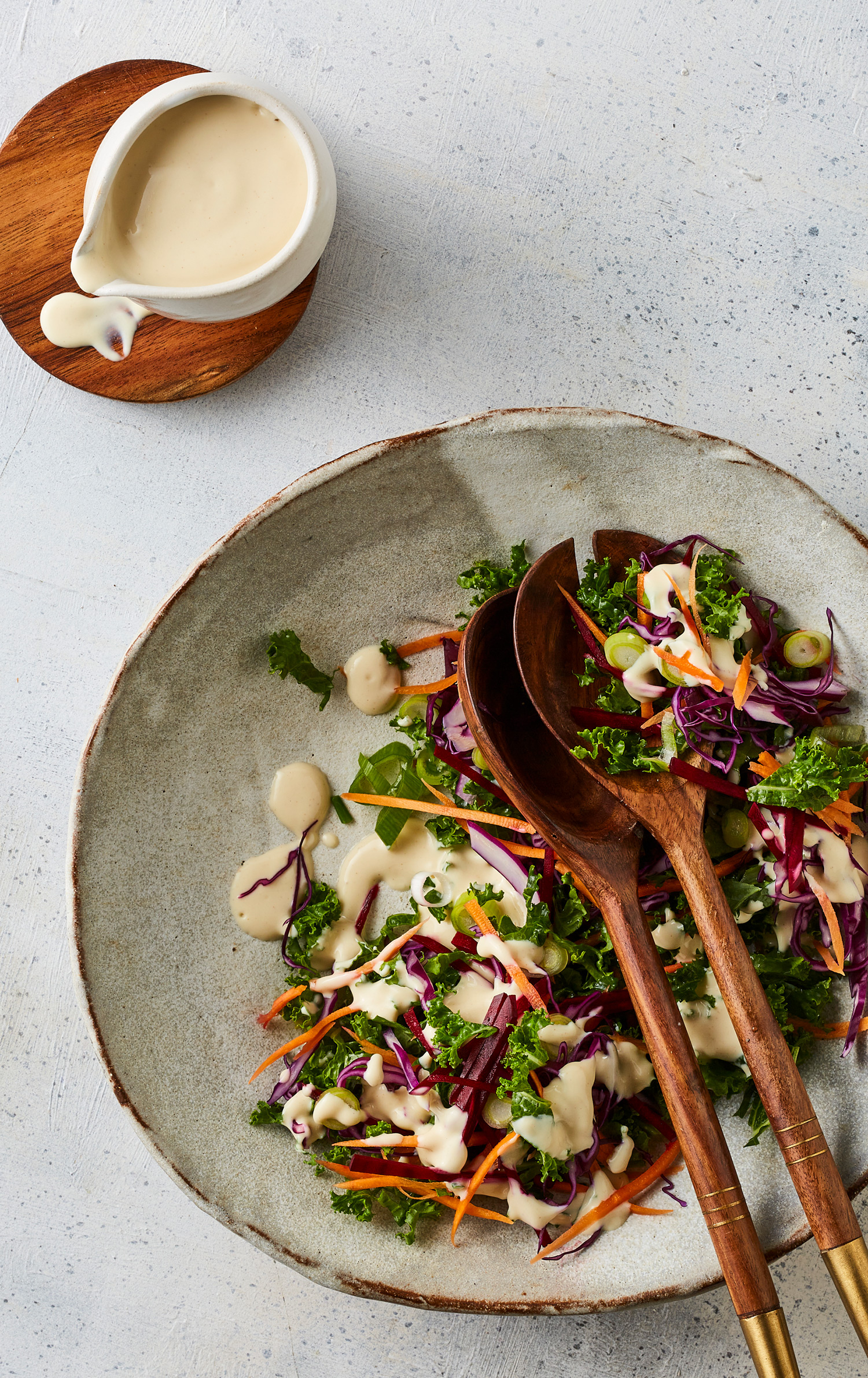 - Place kale, cabbage, carrot, beetroot and spring onion in a bowl and toss to combine.