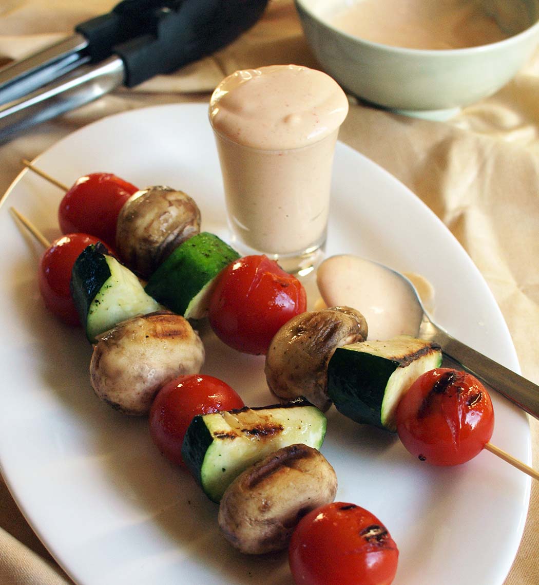 - Serve the veggie kebabs with the mayo dolloped on top, or on the side in a bowl for dipping.